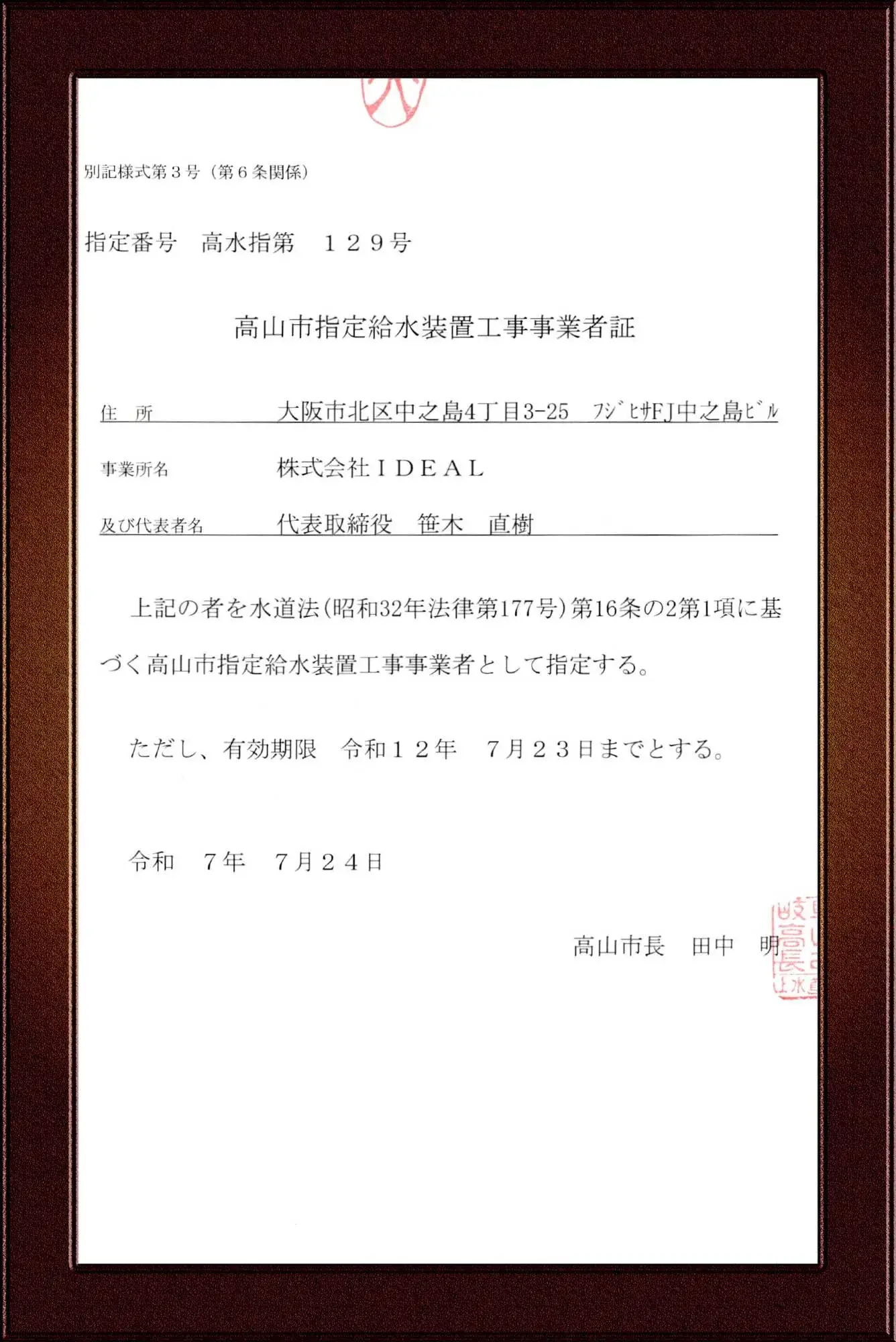 蛇口専門チームは水道局指定業者として高い技術力を適正価格で高山市の皆様にご提供します