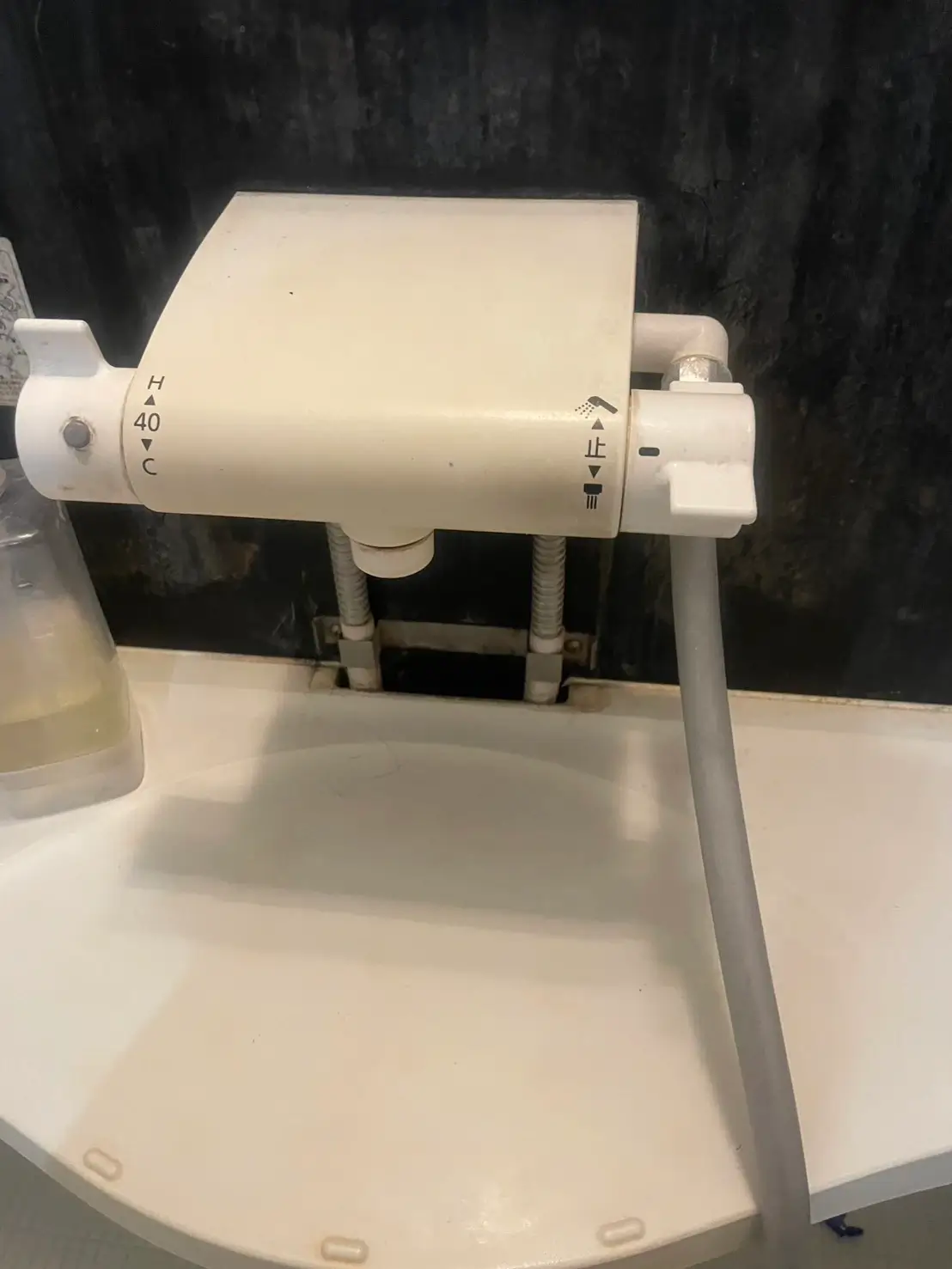 現場を確認したところ、浴室水栓内部の切り替え弁が経年劣化により正常に作動しておらず、水の流れを切り替える機能が失われている状態でした。