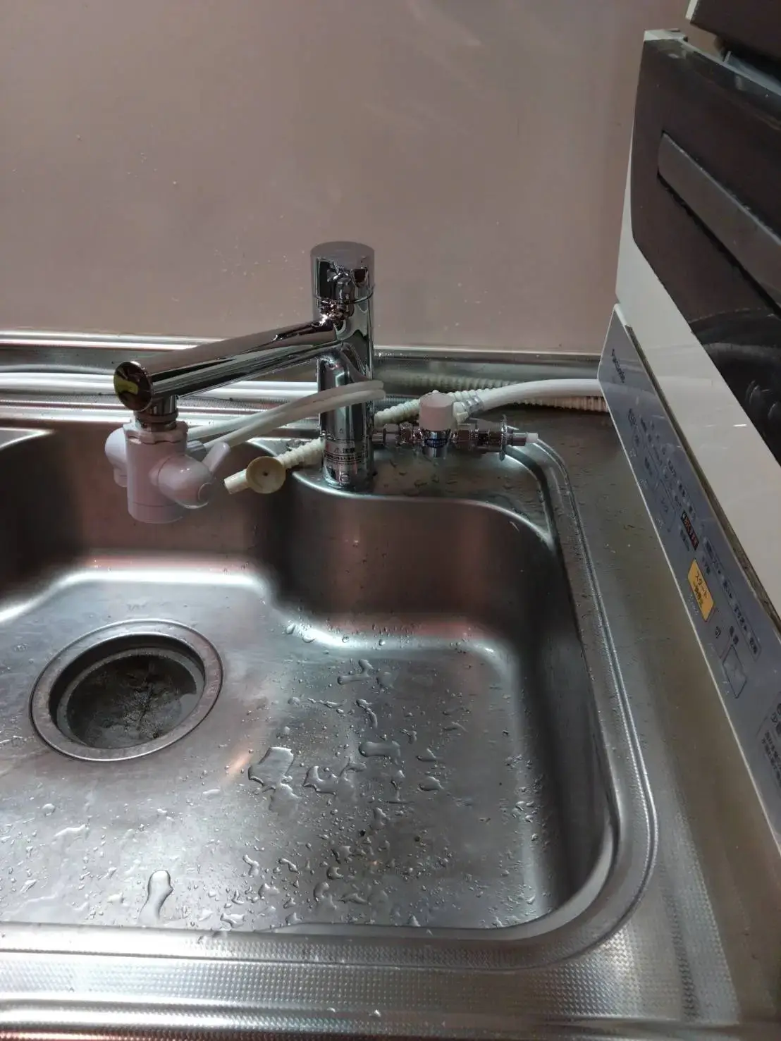 部品の手配を行った後、再訪時に既設の水栓を取り外し、新しい台所水栓を丁寧に設置しました。