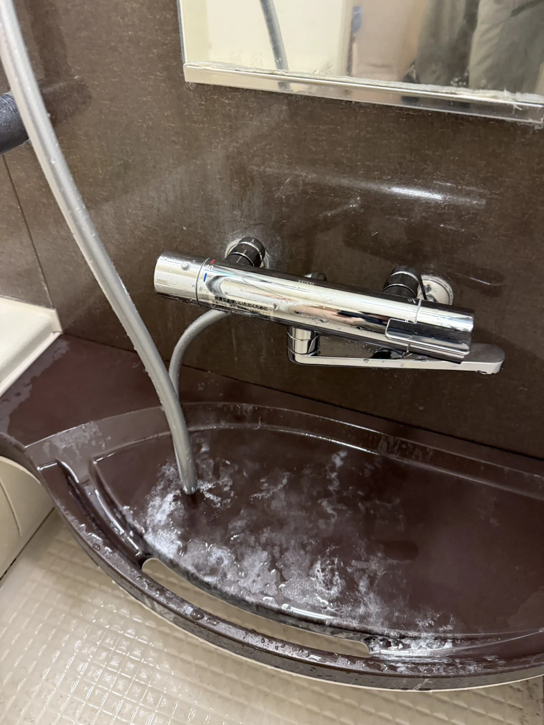 今回のトラブルは浴室シャワー水栓の内部劣化による水漏れで、使用年数から見ても交換が適切な状態でした。