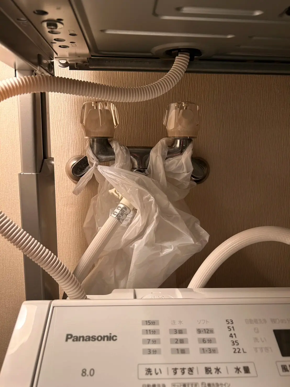 洗濯機の蛇口からポタポタと水漏れしているのに気づきました。